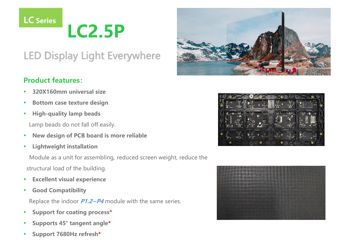 | Pixel Pitch (Khoảng cách điểm ảnh) | 2.5 mm |