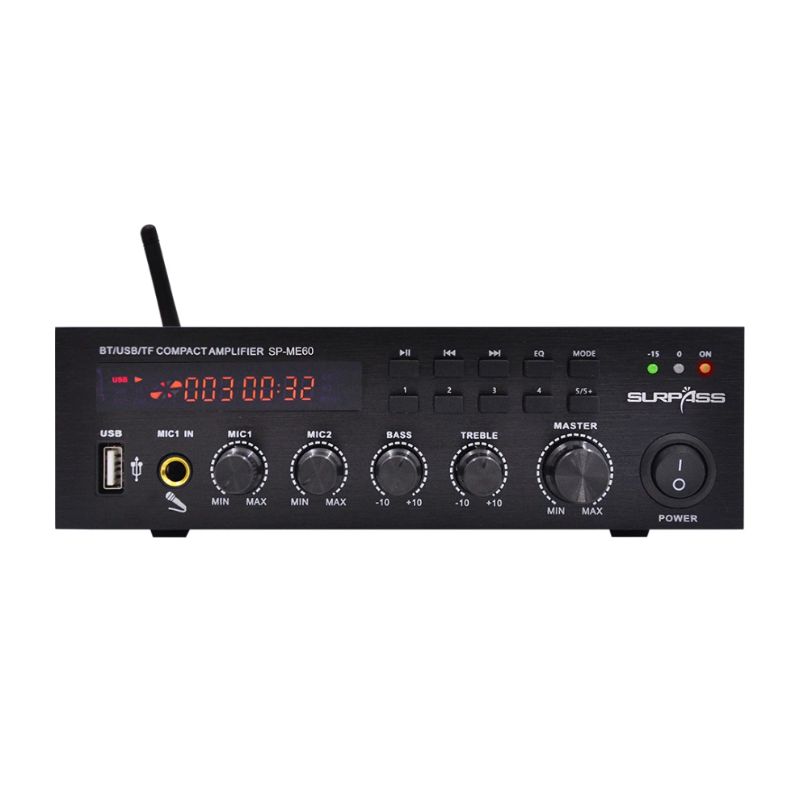 Công suất lớn: Amply Surpass SP-ME60 có công suất 60W, cho khả năng khuếch đại âm thanh mạnh mẽ, phù hợp với các phòng karaoke chuyên nghiệp.