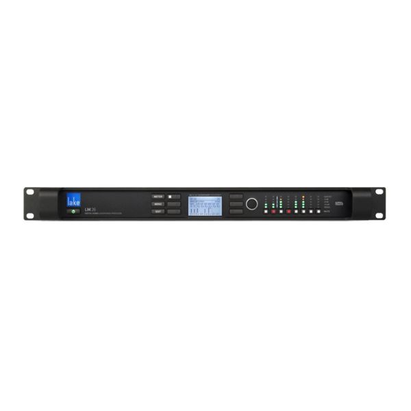 Lake LM 26, hệ thống quản lý loa 2 trong 6 đầu ra kỹ thuật số, bộ hạn chế LimiterMax và RMS, độ trễ tối đa. 2 giây, AES3 kỹ thuật số 8-in / 8-out, có thể định cấu hình qua Phần mềm GPIO, Chuyển đổi A/D và D/A 24-bit chất lượng cao, tần số lấy mẫu bên trong 96 kHz, nổi 32-bit, 1U 19", độ sâu 29cm