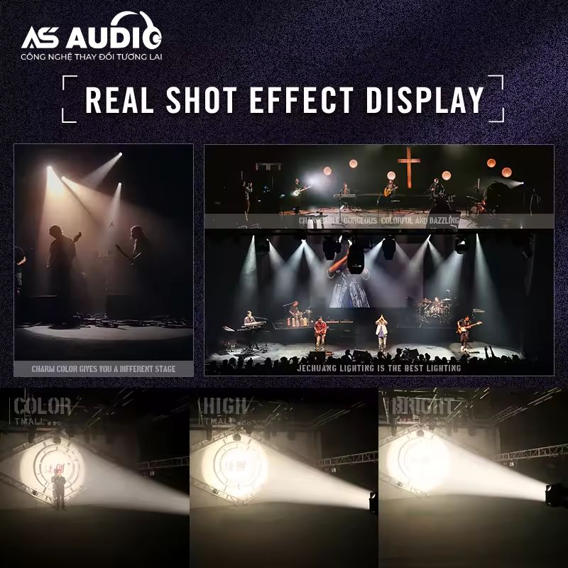 Đèn Profile sân khấu 200W còn có nhiều tính năng điều khiển như DMX512, master-slave, sound và auto, giúp người dùng dễ dàng kiểm soát và tạo hiệu ứng ánh sáng theo ý muốn.