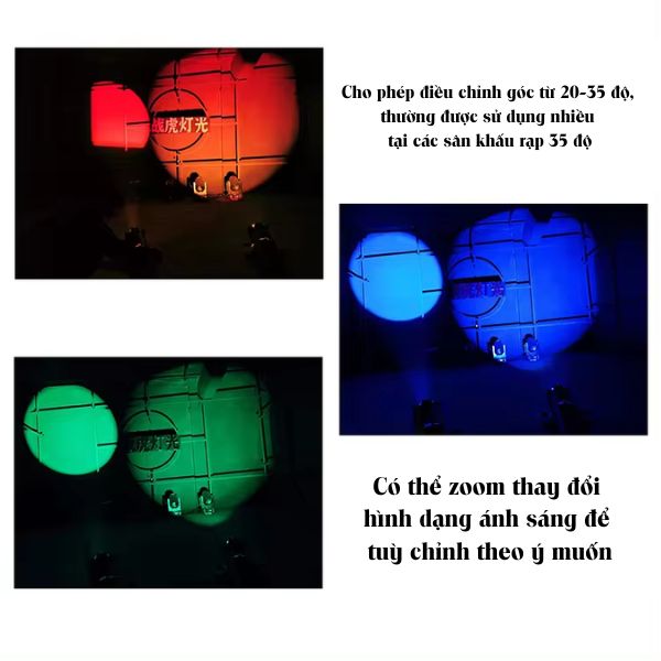 Đèn Profile sân khấu 60W vàng ấm và trắng lạnh mini zoom là một loại đèn chiếu sáng chuyên dụng được thiết kế dành riêng cho sân khấu. Đèn này có công suất 60W và có thể tạo ra màu sáng ấm (vàng) và trắng lạnh.