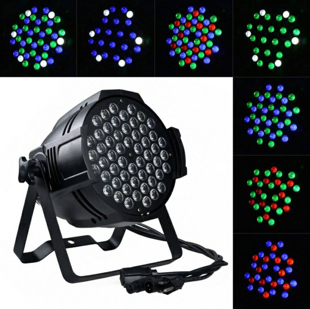 Màu sắc đèn đa dạng với nhiều nhàu sắc khác nhau, bên trong mỗi đèn còn bao gồm 54 bóng đèn LED W giúp cho độ phủ theo nón ánh sáng được đều từ khoảng cách 5-10mét, bóng LED được sản xuất theo tiêu chuẩn thế giới nên được sử dụng lâu dài và rất bền. Hiệu ứng màu sắc nhiều giúp khả năng phối màu sân khấu tốt hơn so với các đèn cùng loại. Đèn có thể chạy tự động với 10 lựa chọn chạy khác nhau từ Au01-Au10. Ta cũng có thể để đèn chạy cảm ứng theo âm thanh với 2 chế độ nhanh và chậm. Tốc độ chớp của đèn lên đến 20 lần/s. Tuy nhiên, để cây đèn par led phát huy được tối đa chức năng của nó thì ta nên sử dụng tính năng điều khiển đèn qua bàn điều khiển ánh sáng thông qua kết nối dmx 512. Khi điều khiển qua bàn, ta có thể thoải mái hướng đèn chạy theo ý mình, nhờ đó các hiệu ứng đèn sẽ đẹp hơn rất nhiều (Hiệu ứng đuổi, chạy vòng, cầu vồng...).
