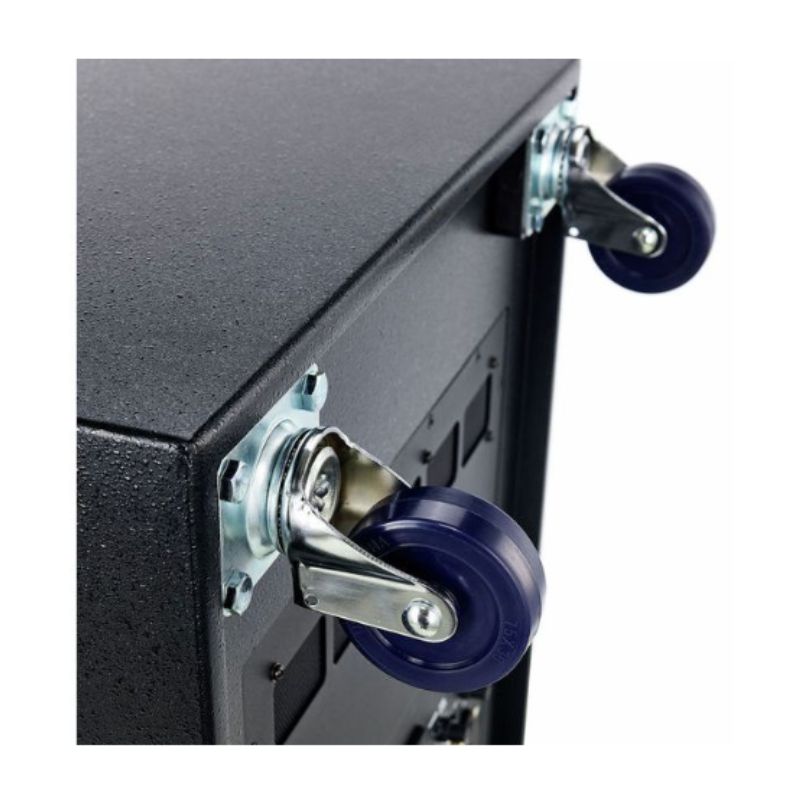 Với khối lượng khoảng 47kg, việc di chuyển sẽ khó khăn nên nhà thiết kế đã gắn thêm 4 bánh xe dưới thùng để việc di chuyển lắp đặt trở nên dễ dàng hơn rất nhiều so với những phiên bản không có trục bánh xe hỗ trợ