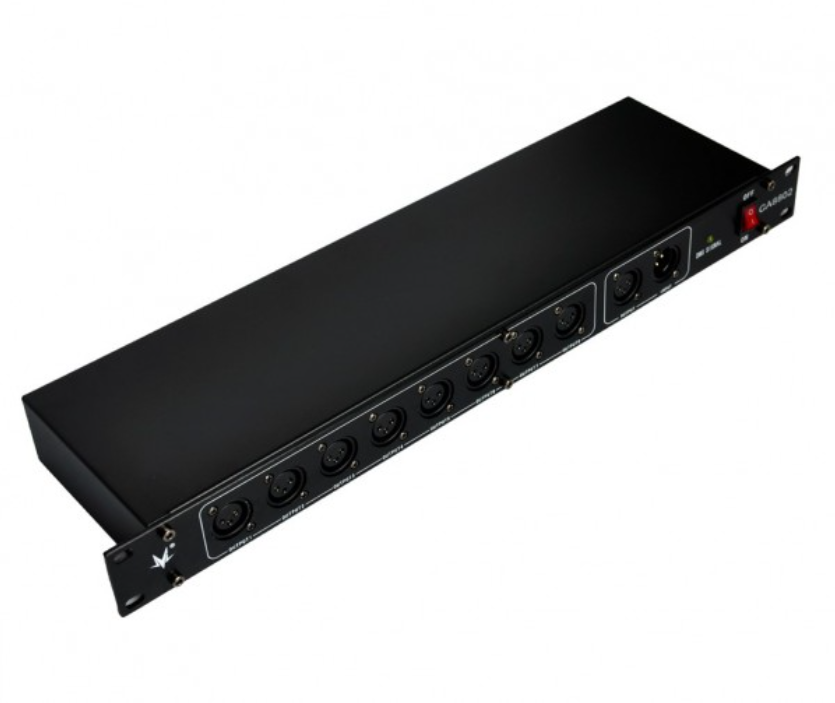 Bàn chia tín hiệu DMX 8 đường (DMX Splitter) là thiết bị phân phối tín hiệu DMX từ bàn điều khiển ra nhiều đường riêng biệt, đảm bảo tín hiệu ánh sáng ổn định, không bị suy hao khi kết nối nhiều đèn.