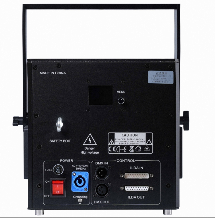 Giao diện điều khiển: giao diện ILDA DB25 quốc tế, DXM512 quốc tế,can connect with American pangolin laser software and tiger, pearl, MA controller,etc.