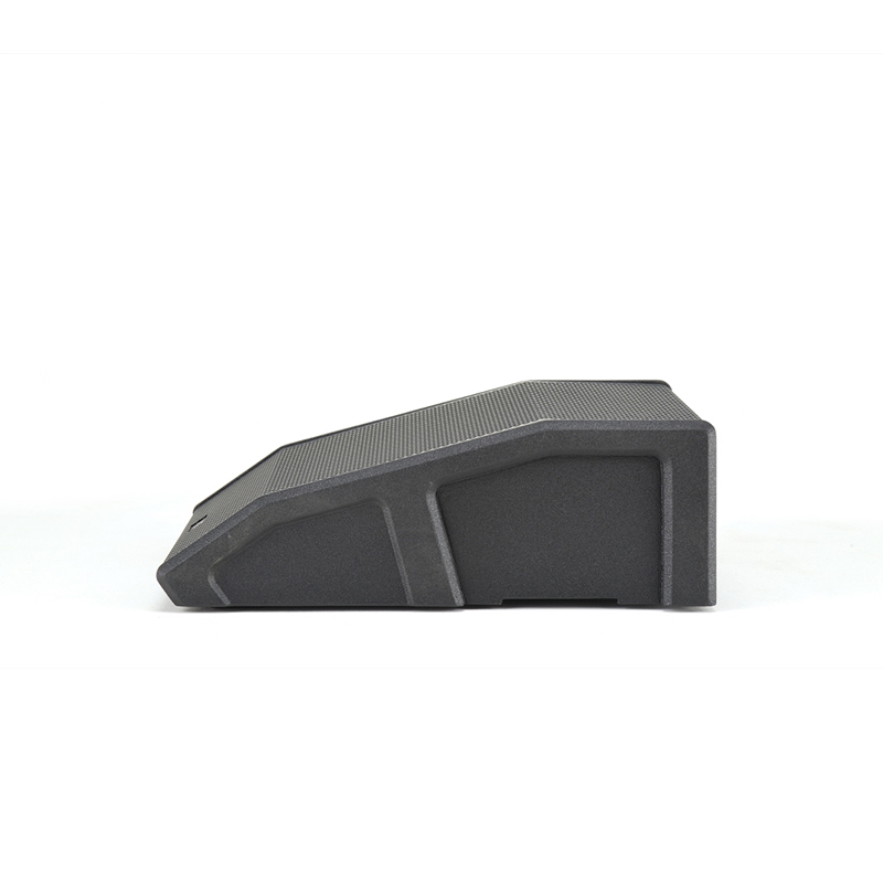 Thùng gỗ của VIO W10 được phủ lớp sơn polyurea màu đen và thiết kế lưới tản nhiệt phía trước-phía sau độc quyền góp phần tạo nên vẻ ngoài đặc biệt nhưng kín đáo, đặc biệt chú ý đến từng chi tiết. Trên thực tế, một tay cầm tích hợp được giấu ở phía bên trái để dễ dàng vận chuyển và một rãnh đặc biệt được khắc ở phía dưới tạo điều kiện thuận lợi cho việc đi qua dây cáp bên dưới tủ, mang lại vẻ ngoài gọn gàng và sạch sẽ trên sân khấu.