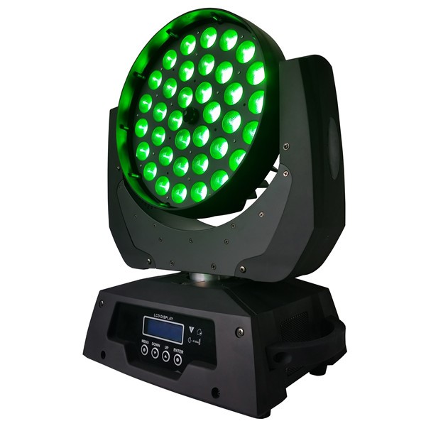 Đèn Moving Head LED 36X10W RGBW 4in1 Wash Zoom là mẫu đèn zoom đầu di chuyển LED 10W công suất cao 36 chiếc, phạm vi zoom có thể từ 10 độ đến 60 độ. Đó có thể là đèn chùm và đèn rửa đầu chuyển động, vỏ nhựa cao cấp cứng và bền, mẫu đèn xoay tạo kỹ sảo sân khấu, ánh sáng phát ra từ các bóng LED với công suất cao, tạo nhiều hiệu ứng đẹp và sinh động. Ánh sáng đèn rất thích hợp cho các buổi biểu diễn trên sân khấu, nhà hát, TV, studio, các quán bar lớn nhỏ,...